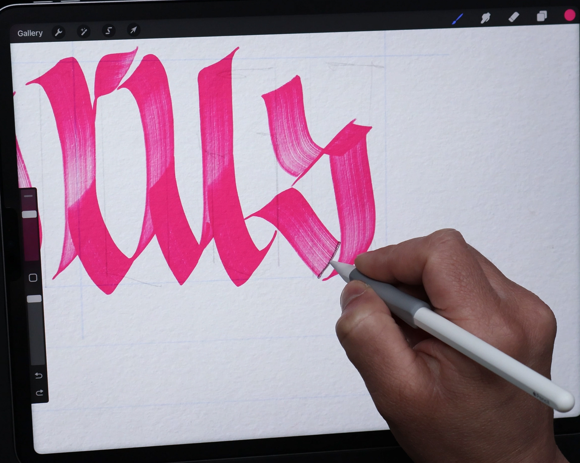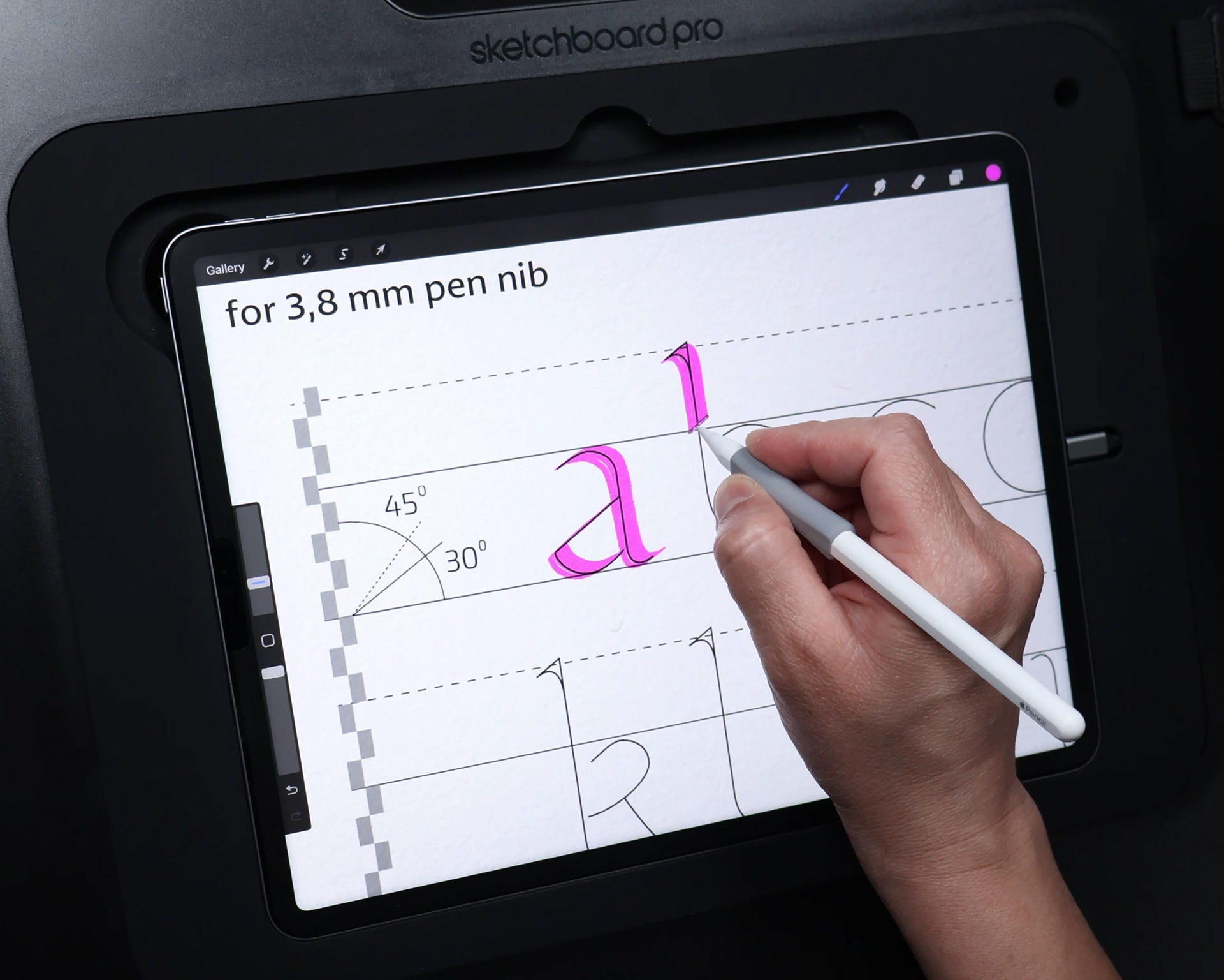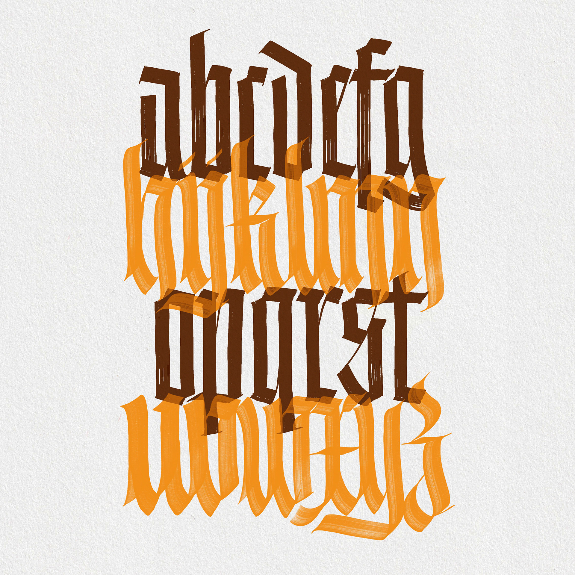 This pack emulates broad edge calligraphy pens and flat brushes including its imperfections to bring an experience as close as possible to traditional calligraphy on paper but with the advantages of the iPad and the Procreate App. You have total control of the pen angle and pressure to achieve great texture results.